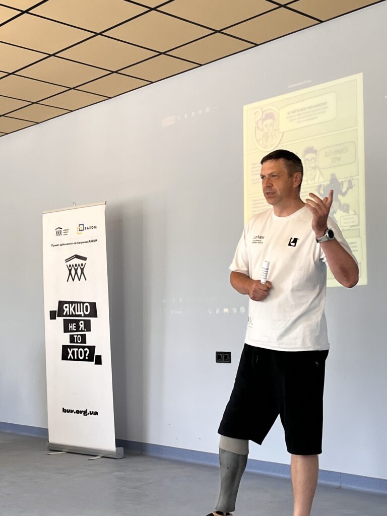 Один з керівників Простору, який теж має досвід користування протезом, провів лекцію на відповідну тему для молоді. Якщо під час інших лекцій кількість питань від аудиторії до спікера була відносно невеликою, то під час цієї проявився справжній інтерес молоді до ветеранів, сенс яких ми зараз переосмислюємо. Переважна більшість цієї молоді та підлітків колись чула про ветеранів в школі та зустрічалась з ними, коли на якісь події запрошували людей віком за 90 років, і це точно була не та жива взаємодія, якою вона може бути. Нам вдалось це відкрити трохи з іншої сторони: в молоді була можливість спілкуватися з ветеранами і про бойовий досвід, і загалом про військо, і також безпосередньо поспілкуватися з людьми, які так чи інакше стикаються з бар’єрами в соціумі – відповідно показати молоді, як доречніше взаємодіяти, як питатись чи потрібна допомога і т.д. Цей простір став відкритим сам по собі, ми лише трішки посприяли йому, створивши атмосферу довіри, бо і Олексій (працівник Простору), і Тимофій (ветеран, який доєднався як учасник до робіт) – вони охоче з усіма спілкувалися, ділилися думками, робили спільні фото.